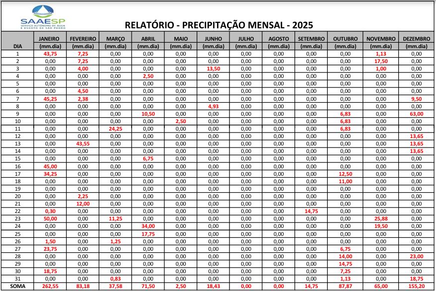 – RELATÓRIO – PRECIPITAÇÃO MENSAL – ANO 2025