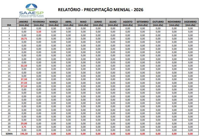– RELATÓRIO – PRECIPITAÇÃO MENSAL – ANO 2026