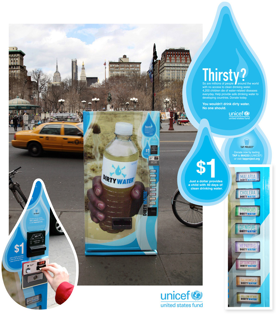 Trata-se de uma estratégia do fundo das Nações Unidas para a infância (Unicef) para mostrar como milhões de pessoas em todo o mundo sofrem as conseqüências de beber água contaminada diariamente devido a falta de acesso a água potável.