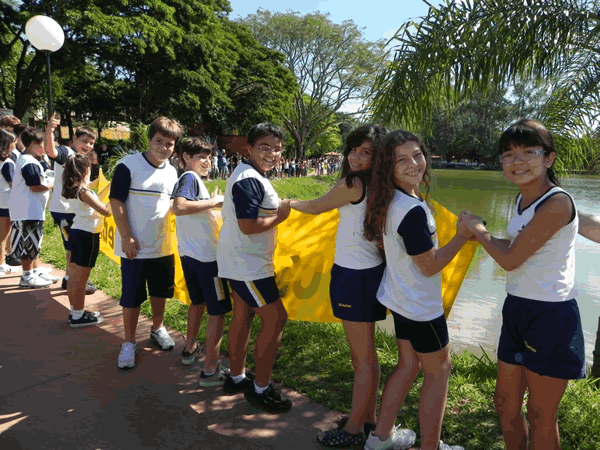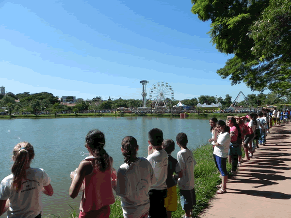 Mais de mil crianças e jovens tomaram a rua Veríssimo Prado na manhã desta quinta-feira, com destino ao Parque Maria Angélica, onde deram um abraço simbólico na represa, comemorando a data e lembrando da importância da preservação e do uso racional da água.