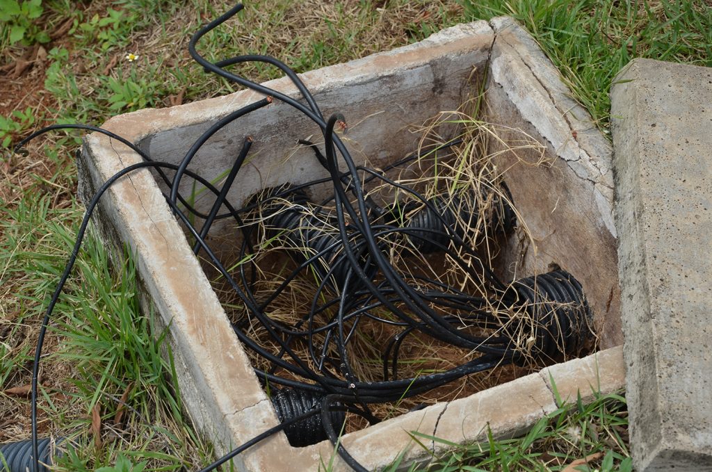 A ETE (Estação de Tratamento de Esgoto) do Horto Florestal foi alvo de vandalismo na última semana. A cerca de arame foi cortada, painéis de força danificados e foram furtados vários fios, cabos de para raio e de iluminação. Um cabo de aço foi usado para tentar tirar toda a fiação enterrada no local. Só para reativar a parte elétrica, o custo estimado é de R$ 10 mil.
