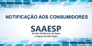 O SAAESP – SERVIÇO AUTÔNOMO DE ÁGUA E ESGOTO DE SÃO PEDRO, através de seu Diretor Presidente vem a publico NOTIFICAR os consumidores que estão em debito, ou que se beneficiaram do REFIS e não estão adimplindo o acordo com a Autarquia referente a consumo de água, para que compareçam e regularizem a situação ate o final do mês de novembro de 2021, a fim de evitar a tomada de medidas judiciais e extrajudiciais, esclarecendo que a Lei 12.767/2012 prevê expressamente a possibilidade de protesto das certidões de dívida ativa (CDA). Após esse prazo as CDAs serão enviadas para cartório e não haverá possibilidade de novas negociações.