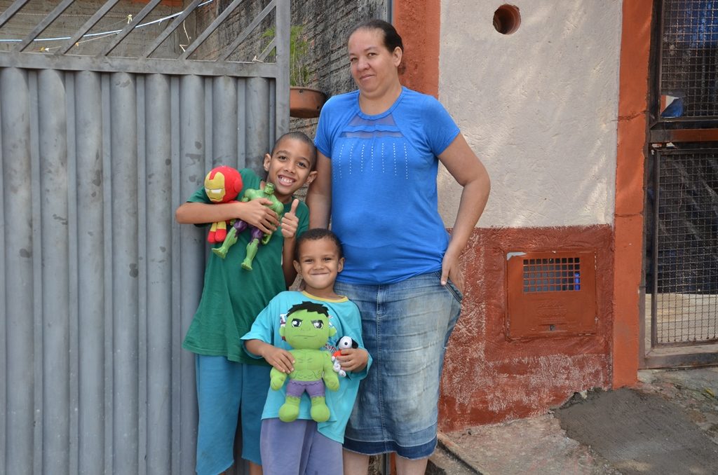 Beatriz Carvalho, que mora há 9 anos no bairro com os filhos Emanuel, 9, Kaleb, 3,e o marido, recorda para dar banho quente nas crianças, só esquentado a água. “A gente esquentava para eles e eu e meu marido tomávamos banho frio mesmo. Agora é diferente, tem água quente em casa”, comemora.