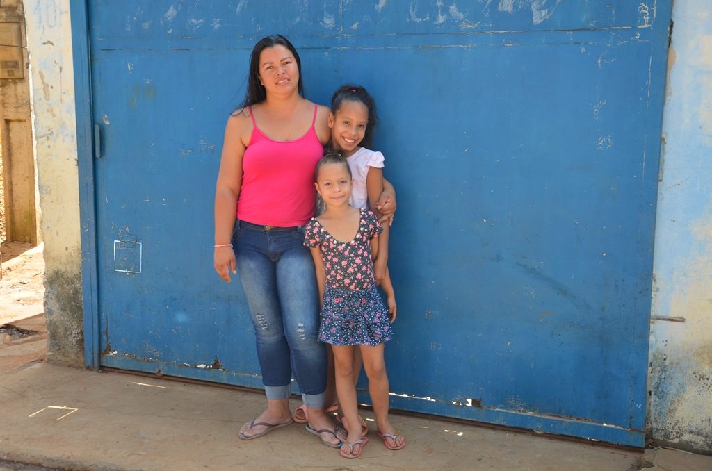 Franciele da Conceição, 27, com as filhas Rafaela, 9 e Milena, 4, também celebra a mudança. “Antes precisava pedir para as pessoas para pegar água. Agora não, ficou bem melhor”. Franciele conta também que após receber os títulos de posse, aconteceram várias mudanças. “Muita gente tinha receio de mexer nas casas e agora já estão tirando as tábuas, mexendo mesmo e ficou bem melhor, sem escorpião, rato. Hoje tem mais qualidade de vida”, conta a moradora que vive no bairro desde que nasceu.