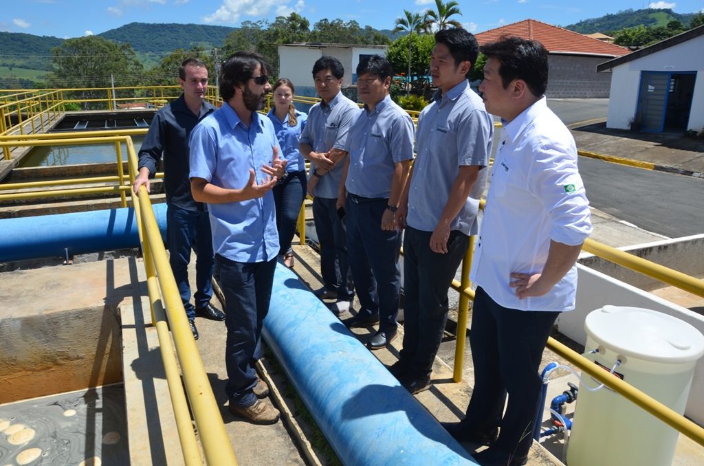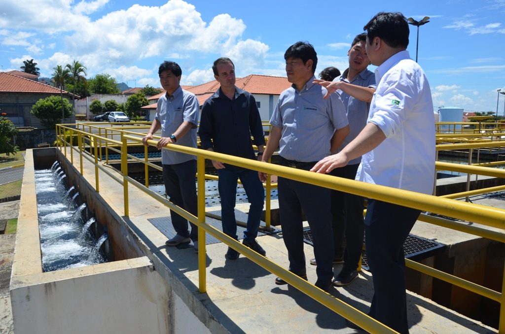 Acompanhado do diretor-presidente do Saaesp e vice-prefeito Thiago Silva, os coreanos puderam ver como funciona o tratamento e distribuição da água em São Pedro