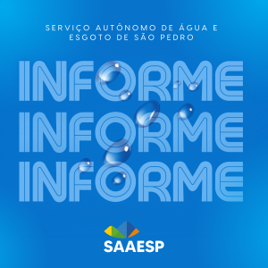O Serviço Autônomo de Água e Esgoto de São Pedro (Saaesp) vem, por meio deste comunicado, informar o rompimento da adutora de água potável dos bairros São Dimas, São Thomé, Recanto das Águas e adjacências.